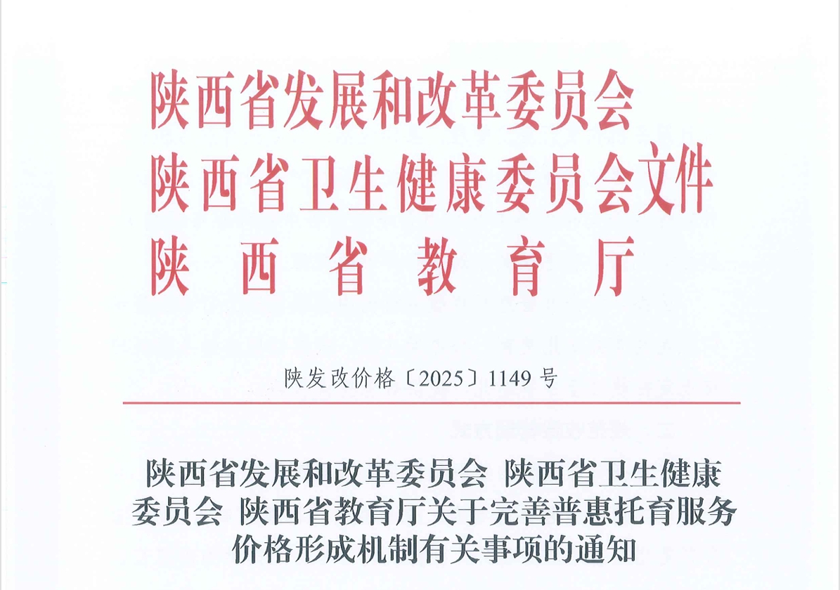 陕西省发展和改革委员会 陕西省卫生健康委员会 陕西省教育厅关于完善普惠托育服务价格形成机制有关事项的通知