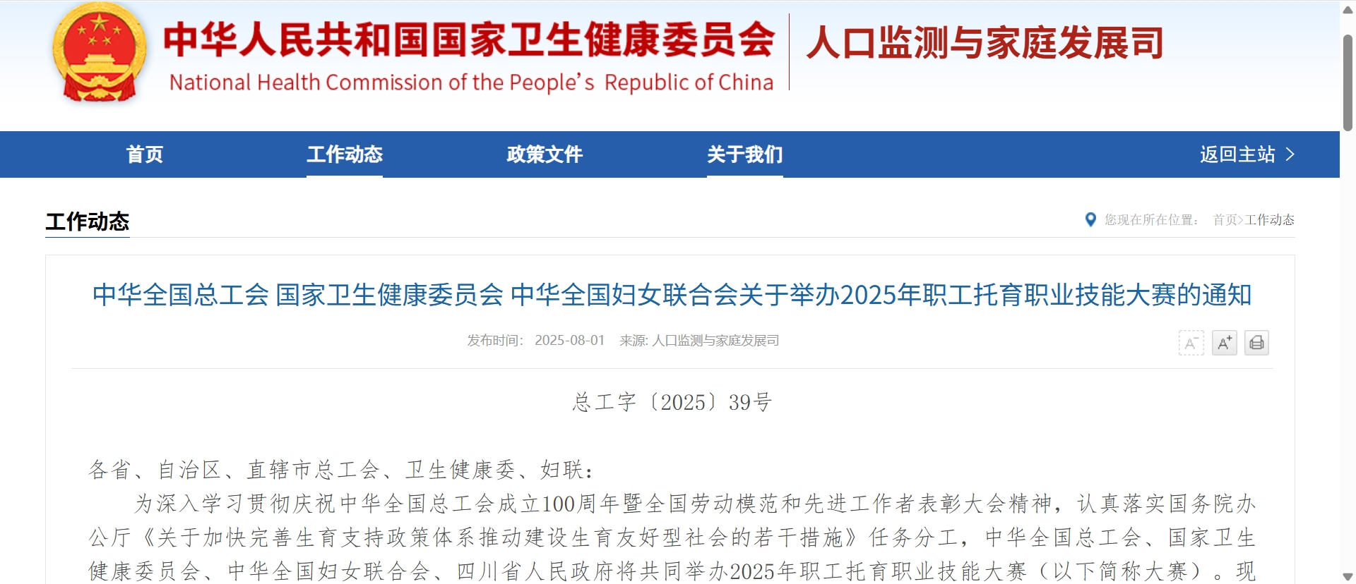 关于举办2025年职工托育职业技能大赛的通知