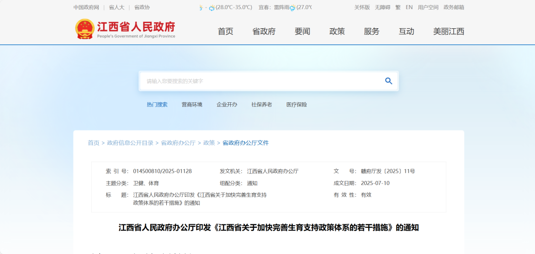 江西:对3周岁以下婴幼儿发放补贴